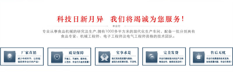 廣東豐會行智能裝備有限公司,廣州永豐廚具設(shè) 備 于 1997年 廠辦 , 專業(yè)從事食品機械的研究及生產(chǎn)。本廠擁有1000多平方米的現(xiàn)代化 生產(chǎn)車間,配備一批分別具有食品專家,機械工程師,電子工程師 質(zhì)的產(chǎn)品生產(chǎn)及售后服務(wù)的專業(yè)隊伍,從而為客戶服務(wù)提供優(yōu)質(zhì)的 及電氣...
